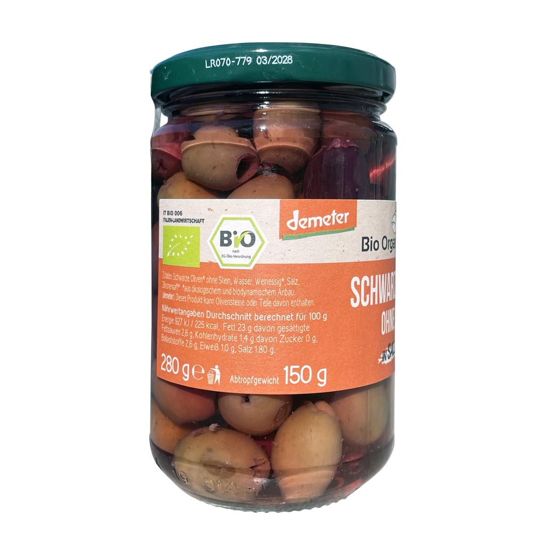 Unsere Schwarze Oliven Peranzana Bio stammen aus Apulien und werden nach Demeter-Richtlinien angebaut. Die entkernten Oliven werden in einer leichten Salzlake eingelegt und bieten ein authentisches mediterranes Geschmackserlebnis.
